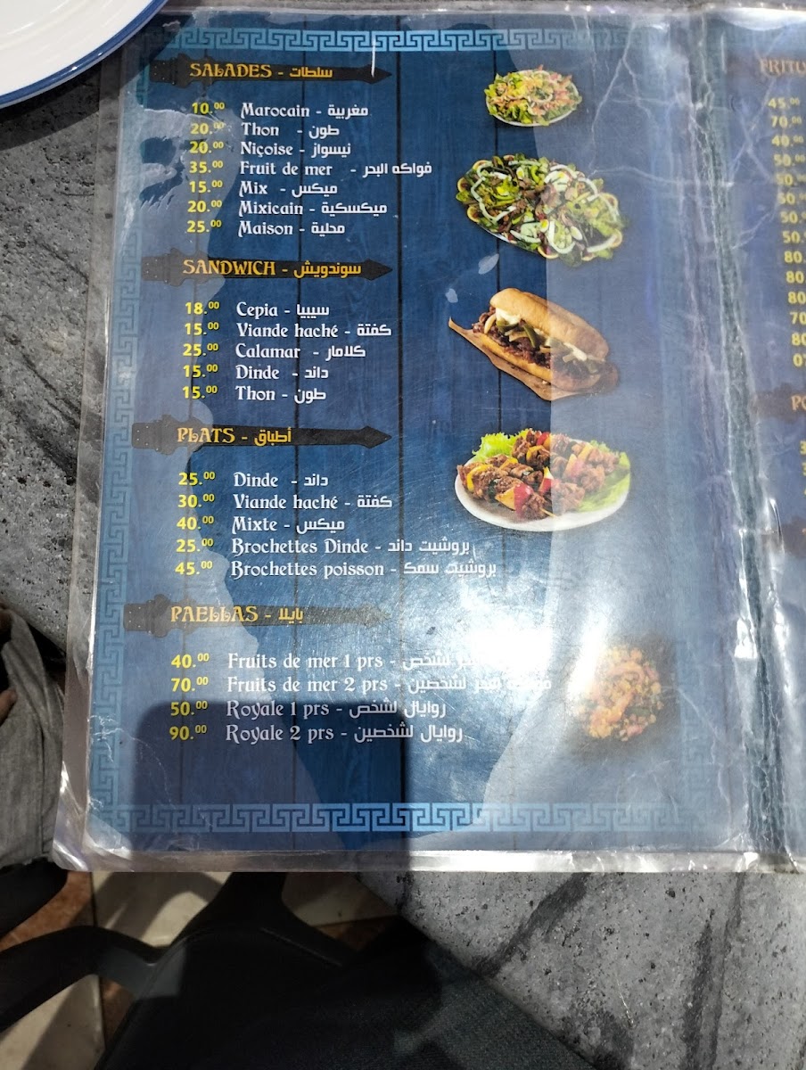 Introducing the menu at Restaurant Labalina, located in Guelmim, Morocco, is an enticing journey through the finest seafood offerings in the city. This charming eatery has gained a stellar reputation among locals and visitors alike for its remarkable selection of fish dishes. Each meal is prepared fresh upon ordering, ensuring that every bite bursts with flavor.
